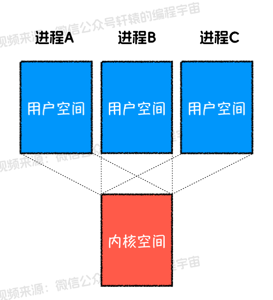 听不太懂?简单理解就是这样的:咱们计算机上运行了很多程序,比如有微信,有浏览器,有音乐播放器等等。操作系统为了安全考虑,一个进程正常情况下只能访问自己的一亩三分地,别的进程的数据,以及操作系统内核中的数据,都是无法访问的。想要访问只能通过操作系统提供的一些“官方”途径。